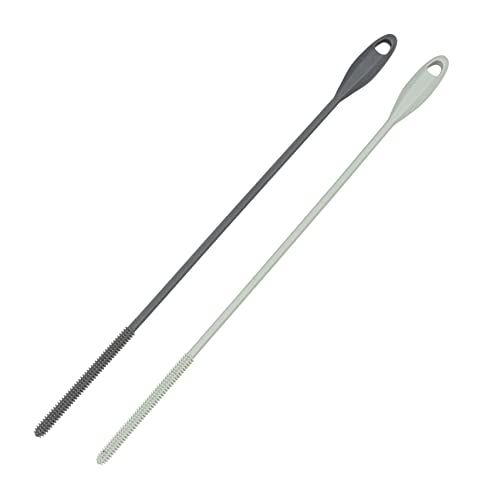 WENKO Trinkhalm-Bürste Triko im 2er Setextra schmale Bürste aus Silikon zur hygienischen Reinigung von Trinkhalmen mit Öse zum Aufhängen, spülmaschinengeeignet, 0,5 x 26 cm, Grau/Grün