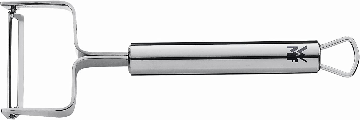 Der WMF Sparschäler Profi Plus ist der ideale Küchenhelfer, um Gemüse und Früchte dünn zu schälen. Die scharfe Klinge gleitet mühelos über unebene Oberflächen und trennt die Schale in dünnen Schichten ab. Hergestellt aus strapazierfähigem Cromargan® Edelstahl ist der Sparschäler besonders robust und langlebig. Er ist spülmaschinengeeignet und somit einfach zu reinigen. Der WMF Profi Plus Sparschäler erfüllt die hohen Ansprüche von Profiköchen an Funktionalität und Qualität. **Highlights** - Müheloses Schälen von Gemüse und Früchten - Scharfe, bewegliche Klinge für unebene Oberflächen - Strapazierfähiges Cromargan® Edelstahl - Spülmaschinengeeignet - Erfüllt die hohen Ansprüche von Profiköchen **Produkteigenschaften** - Produktname: Profi Plus Sparschäler, 17 cm - Artikelnummer: 3201000155 - EAN: 4000530559876 - Griffmaterial: Cromargan - Griff-Farbe: Gebürsteter Edelstahl - BPA frei **Lieferumfang** - 1x WMF Sparschäler Profi Plus