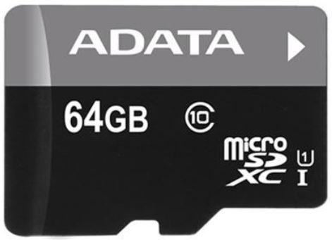 Zuverlässige 64 GB Speicherkarte mit einem SD-Adapter, geeignet für verschiedene Anwendungen.