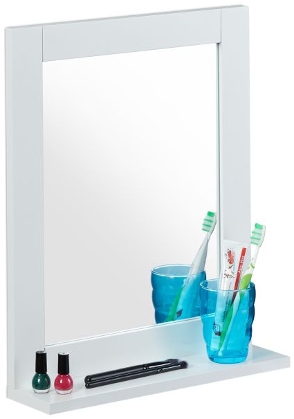 Der Wandspiegel mit Ablage in weißer Holzoptik (Artikelnummer: 10032182) ist die ideale Ergänzung für Bad, Flur, Wohn- oder Schlafzimmer. Mit seinen kompakten Maßen von 49 x 40 x 10 cm und einer Spiegelfläche von 38 x 30 cm bietet er nicht nur eine praktische Möglichkeit zur Selbstbetrachtung, sondern auch Stauraum für Zahnputzbecher oder Schlüssel. Gefertigt aus MDF und Glas, vereint er Funktionalität und modernes Design. **Highlights** - Vielseitig einsetzbar in verschiedenen Räumen - Praktische Ablagefläche für zusätzlichen Stauraum - Schlichtes Design in Weiß passt zu jeder Einrichtung - Perfekt als Schmink- und Frisierspiegel im Bad - Einfache Montage mit Anleitung und Montagematerial **Produkteigenschaften** - Größe: 49 x 40 x 10 cm - Spiegelfläche: 38 x 30 cm - Ablagefläche: 40 x 8,5 cm - Gewicht: ca. 2,3 kg - Material: MDF, Glas - Farbe: Weiß **Lieferumfang** - 1x Wandspiegel - Anleitung und Montagematerial enthalten - Dekoartikel sind nicht im Lieferumfang enthalten