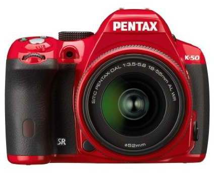 The Pentax K-50 is a fully weather-sealed D-SLR camera with an big optical viewfinder and fast burst shooting capability. It's available to order in any of 120 color combinations, but its video functionality is behind the times.