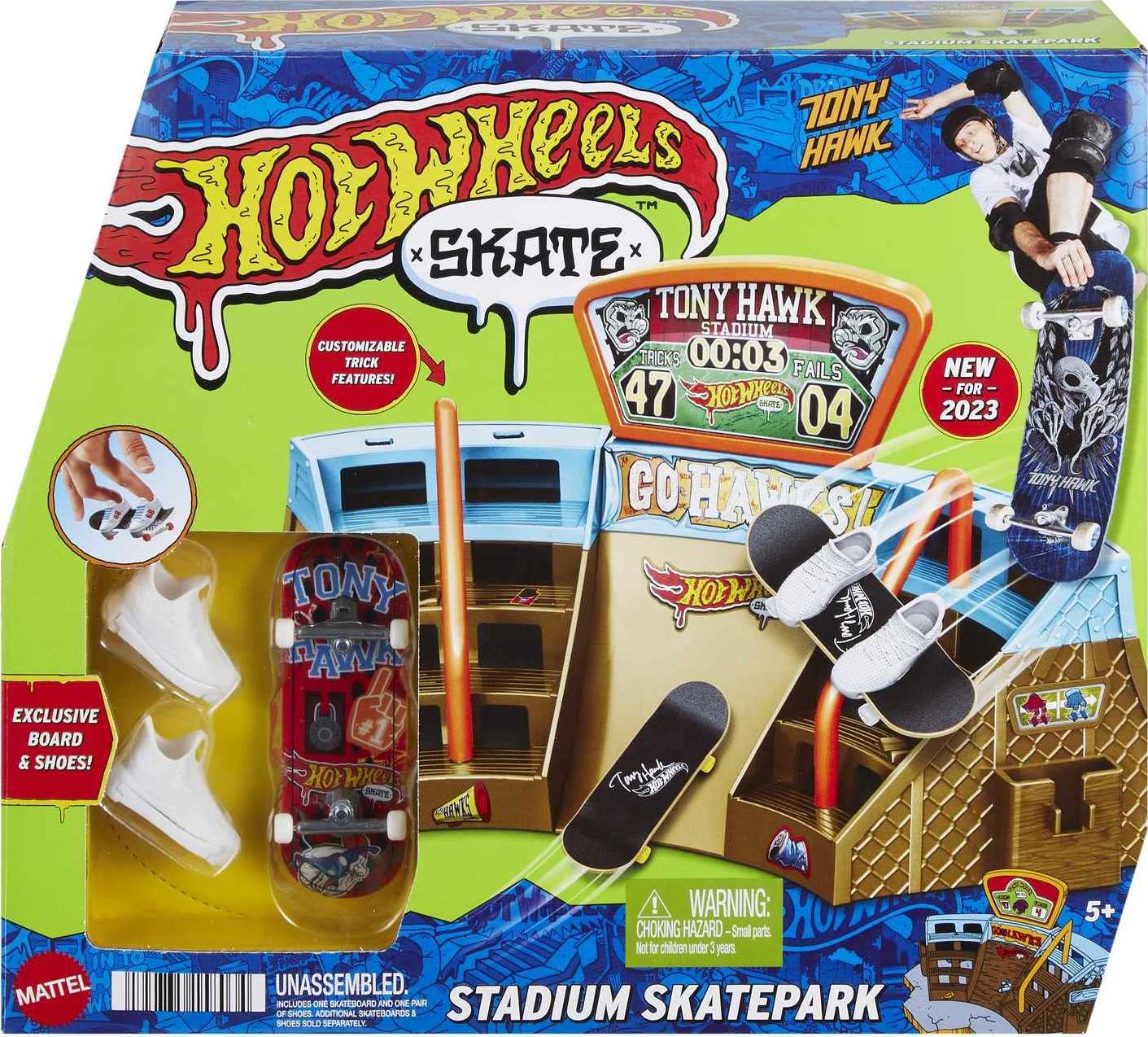 | Name | Hot Wheels Skate Stadion-Set mit exklusivem Fingerboard, das in Zusammenarbeit mit Tony Hawk entworfen wurde, 1 Paar abnehmbare Skate-Schuhe, Spielzeugaufbewahrung für Finger-Skateboards - HPG34 |