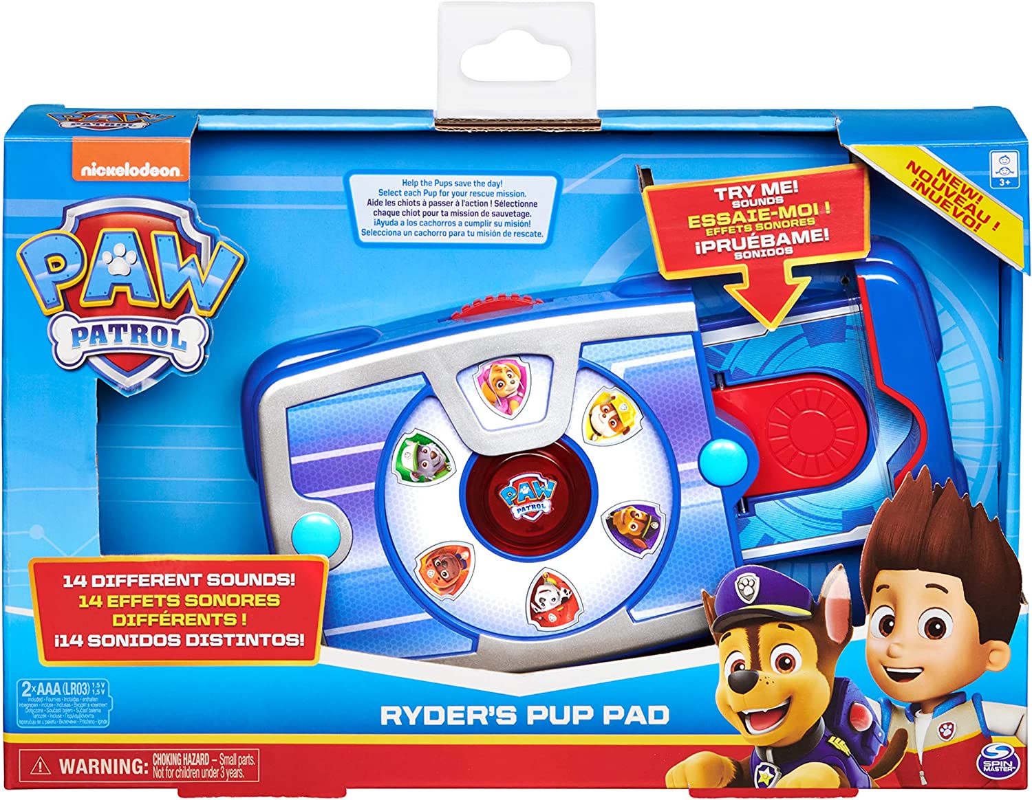 Help de PAW Patrol-pups de held van de dag te worden met de Pup Pad van Ryder! Met 14 verschillende geluiden brengt de Pup Pad van Ryder de spanning van PAW Patrol tot leven. Net als in de serie kun je met de Pup Pad van Ryder contact opnemen met de PAW Patrol als er problemen zijn. Draai het keuzewiel aan de bovenkant om uit Chase, Marshall, Rubble, Skye, Rocky of Zuma te kiezen. Als je een pup selecteert, licht het midden op en hoor je unieke geluiden uit de serie! Om je missie te beginnen, trek je de zijkant naar buiten, draai je aan het keuzewiel en druk je op de rode knop om naar de missie te racen. Met de Pup Pad ben je er klaar voor, net als Ryder! Met de Chase en Marshall Be the Hero-sets (afzonderlijk verkrijgbaar) maak je je verhaal compleet. Wordt inclusief 2 AAA-batterijen geleverd in try-me doos. Geschikt voor kinderen vanaf 3 jaar.