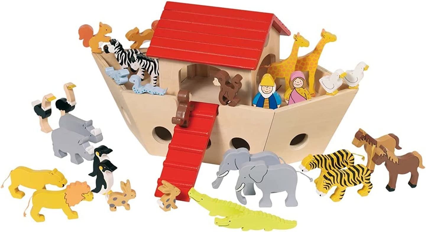 Die Goki 51846 Arche Noah Spielzeug hat eine Vielzahl von Tierpaaren und ein schönes Design. Es gibt gemischte Meinungen über die Größe und die Passform der Figuren.