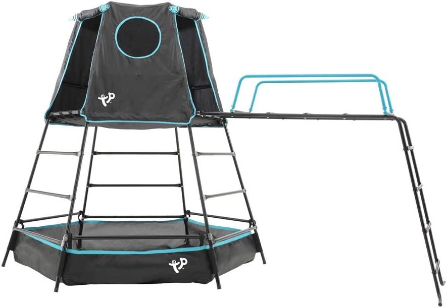 Der TP Toys Stahl Klettergerüst Explorer ist ein vielseitiges Spielgerät für abenteuerlustige Kinder. Der Spielturm besteht aus pulverbeschichtetem Stahl und ist somit für den ganzjährigen Outdoorbetrieb geeignet. Die neigbaren Füße passen sich dem Untergrund an und sorgen für Stabilität. Der Spielturm lädt zum Klettern auf dem Klettergerüst und dem Affensteg ein und bietet mit dem großzügigen Spielzelt zusätzlichen Spielspaß. Das Spielzelt kann für fantasievolle Rollenspiele oder als geheimer Picknickplatz genutzt werden. Unterhalb des Zeltes kann eine vorgefertigte Fläche als Sandkasten oder Bällebad verwendet werden. Das Klettergerüst verfügt über abgerundete Kanten für hohe Sicherheit. Das Spielzelt besteht aus robustem Polyester und ist mit einem kindgerecht bedruckten Boden, Fenstern und zwei Eingängen ausgestattet. Der TP Toys Stahl Klettergerüst Explorer hat eine Kapazität für zwei Kinder mit einem maximalen Gewicht von 100 kg. Das Spielgerät ist für Kinder ab 3 Jahren geeignet und EN71 zertifiziert. Der Wartungsaufwand ist gering. **Highlights** - Vielseitiges Spielgerät für abenteuerlustige Kinder - Pulverbeschichteter Stahl für ganzjährigen Outdoorbetrieb - Neigbare Füße für Stabilität auf unebenem Boden - Klettergerüst mit Affensteg und abgerundeten Kanten für hohe Sicherheit - Großzügiges Spielzelt mit kindgerecht bedrucktem Boden, Fenstern und zwei Eingängen **Produkteigenschaften** - Abmessungen: 208 x 318 x 201 cm - Material: Pulverbeschichteter Stahl, robustes Polyester - Kapazität: Für 2 Kinder, max. 100 kg - Altersempfehlung: Ab 3 Jahren - Zertifizierung: EN71 - Wartungsaufwand: Gering
