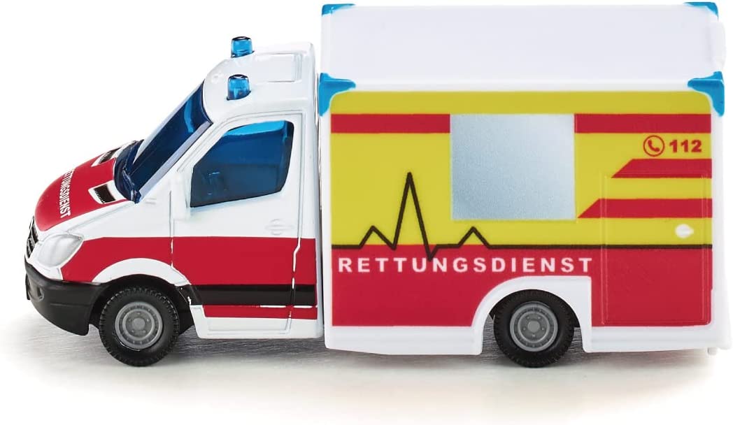 Der Siku Rettungswagen ist ein preiswertes und gut gestaltetes Spielzeugauto, das bei Kindern beliebt ist. Es hat jedoch den Nachteil, dass die Türen nur angedeutet sind und sich nicht öffnen lassen.