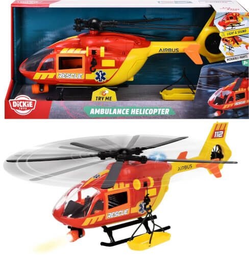 | Beschreibung | Licht, Sound, manuelle Seilwinde, Propeller m. Aufziehschnur, Trage, Tür u. Klappe z. Öffnen, 36cm,TB,J3+ rot/gelb |