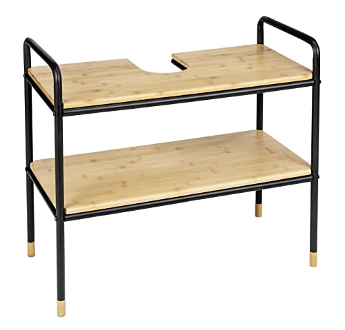 WENKO Waschbeckenunterschrank Loft mit 2 Ablagen aus FSC®-zertifiziertem Bambuszur Aufbewahrung von Handtüchern/Badutensilien, Rahmen aus pulverbeschichtetem Metall, 70 x 60 x 33,5 cm