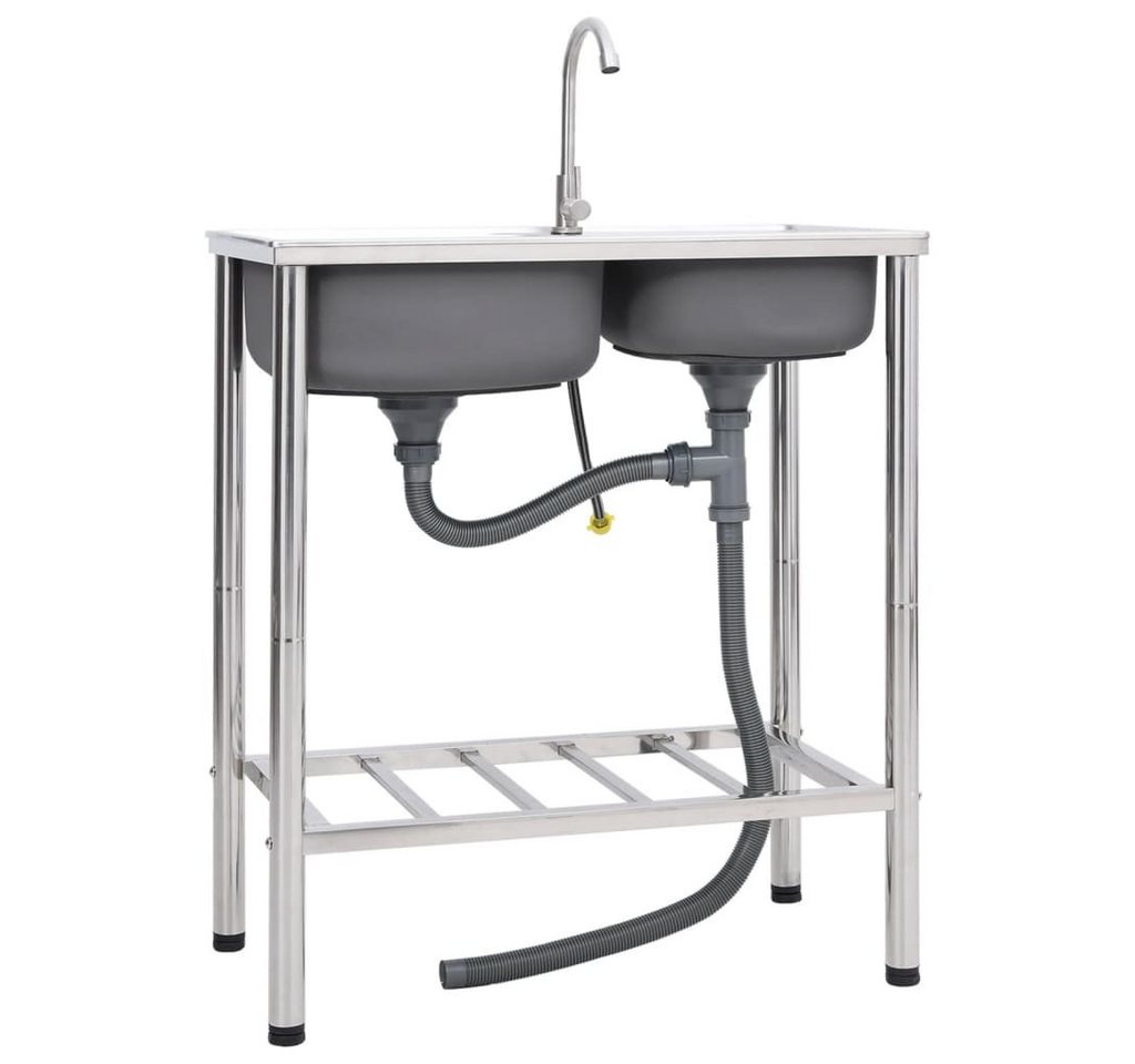 vidaXL Küchenspüle aus Edelstahlmit zwei Becken, Abtropffläche und Wasserhahn, silber