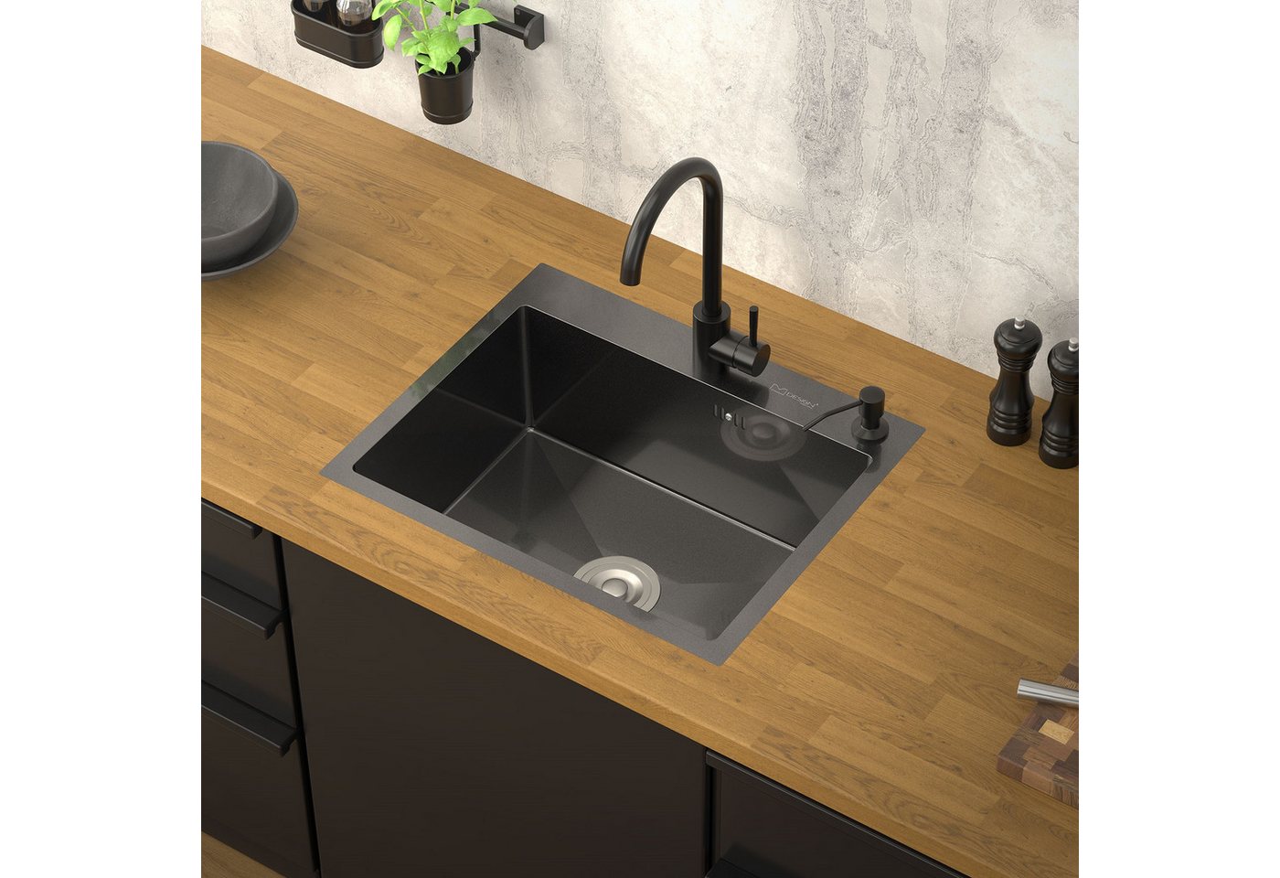 ML-DESIGN Küchenspüle Spülbecken aus EdelstahlAnthrazit, 55/45 cm, mit Ab- und Überlaufgarnitur & Siphon