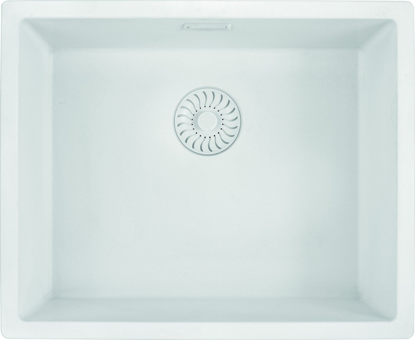• Die CARESSI Küchenspüle CAGRPP50WHFL ist ein rechteckiges Spülbecken aus Quarzkomposit in Weiß
