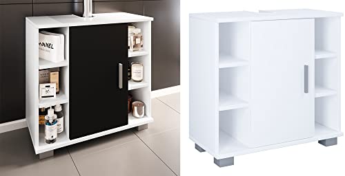 VCM Holz Badmöbel Badunterschrank Waschbeckenunterschrank Badezimmer Zalo M Weiß/Schwarz