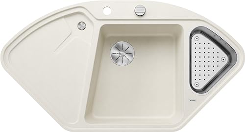 BLANCO DELTA II-FSILGRANIT softweiß, Einbauart: Flächenbündig, Hauptbecken links, mit Ablauffernbedienung, mit Zubehör, 80er Unterschrank, Eckspüle, Ergonomische Anordnung vom Arbeitsbereich