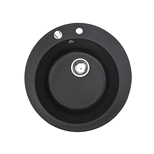 Manestein SpülbeckenKüchenspüle aus Granit, Einbauspüle, Einzelbecken mit Siphon, Fleckenbeständig und Pflegeleicht, 80% Quarzsand, 1 Becken, Rund, Ø 49, Graphit - Schwarz Gesprenkelt