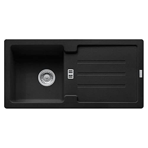 • Das Spülbecken ist aus Fragranit gefertigt und hat eine matte schwarze Oberfläche