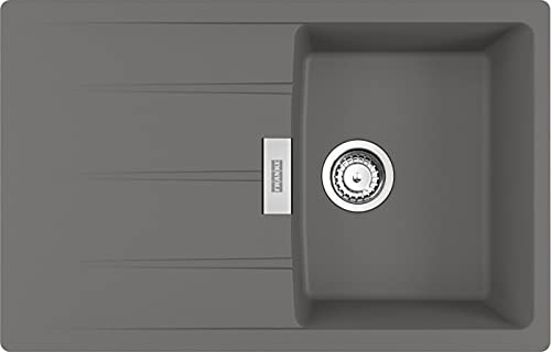 • Die FRANKE Spüle CENTRO CNG 611-78 in STEINGRAU ist eine hochwertige Granitspüle mit einem Ausschnittmaß von 760 x 480 mm R15