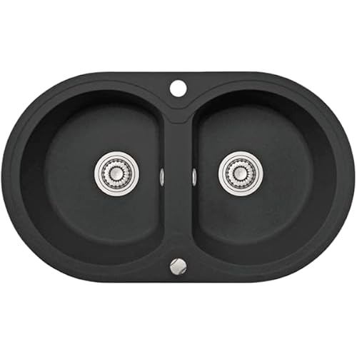 KOLMAN Granitspüle 47x78 cm Dafne Spülbecken Doppelbecken Schwarz Ovalplatzsparender Siphon