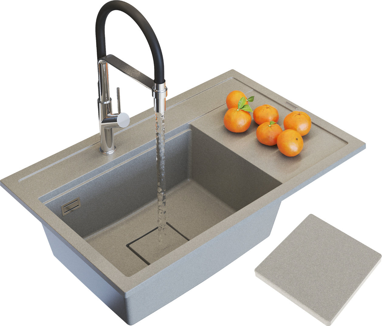 • Die Granitspüle Rendo in Beige ist ein modernes Set, das Design und Funktionalität für stilvolle Küchen vereint