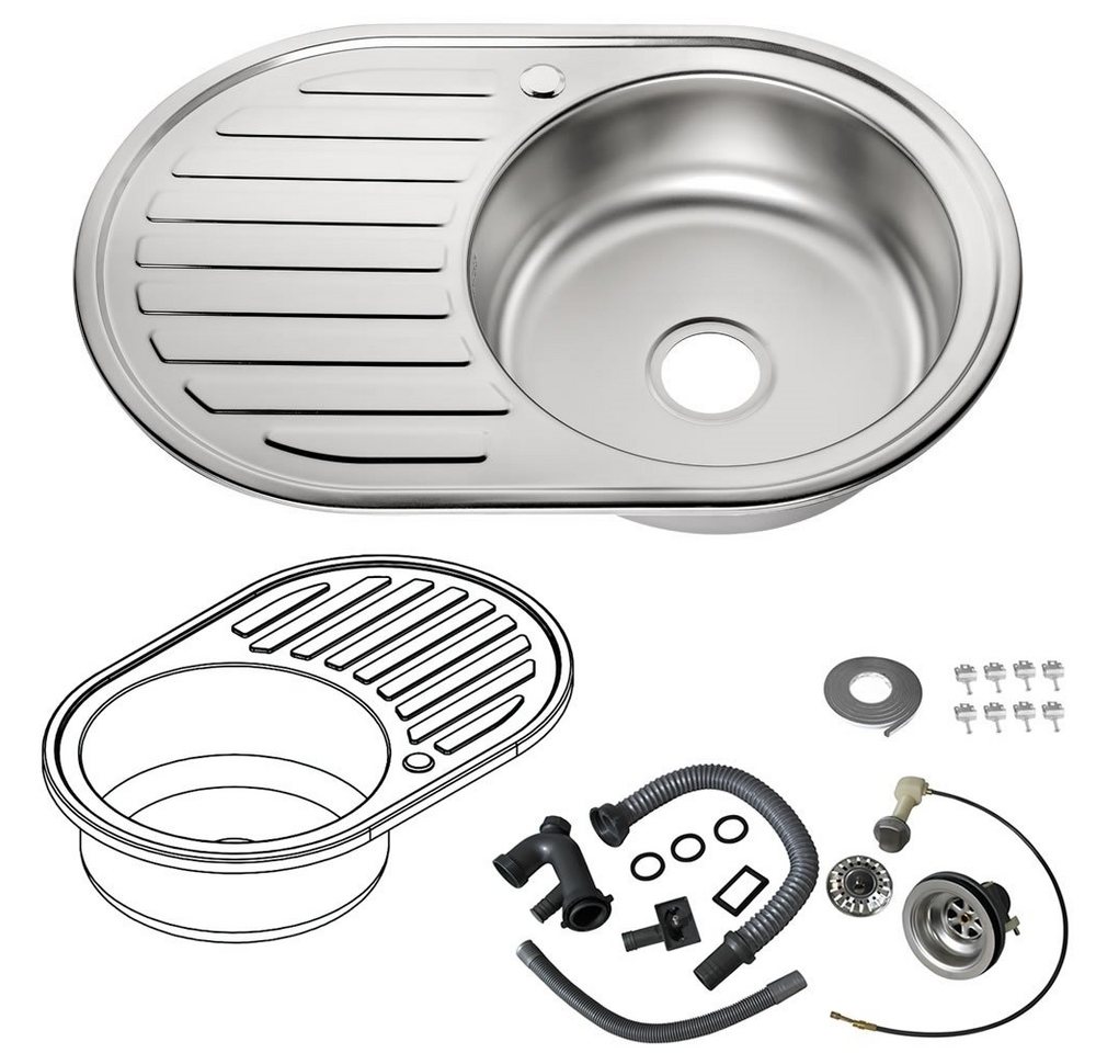 • Die Einbauspüle wird mit Ablaufgarnitur, Siphon und Befestigungs Spanner geliefert, was die Installation erleichtert.