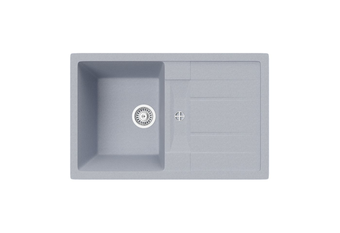 • In der Farbe hellgrau/croma gehalten, hat die Spüle Maße von 780 x 500 mm und eine Beckentiefe von 200 mm