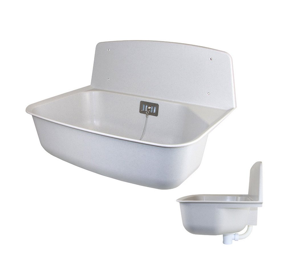 • Mit einem Fassungsvermögen von 14 Litern und Zubehör wie Ablaufsieb, Stopfen und Kette ist dieses Ausgussbecken eine praktische Ergänzung für Arbeitsbereiche.