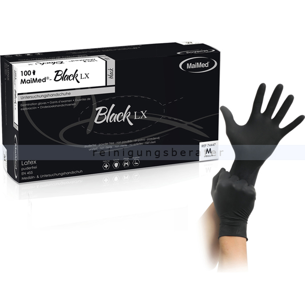 Die MaiMed Black LX L Einmalhandschuhe aus Latex bieten eine hohe Haltbarkeit, eine gute Passform und sind angenehm zu tragen. Durch ihr optisch ansprechendes Design in Schwarz sowie ihren guten Griff eignen sie sich ideal für verschiedene Anwendungen.