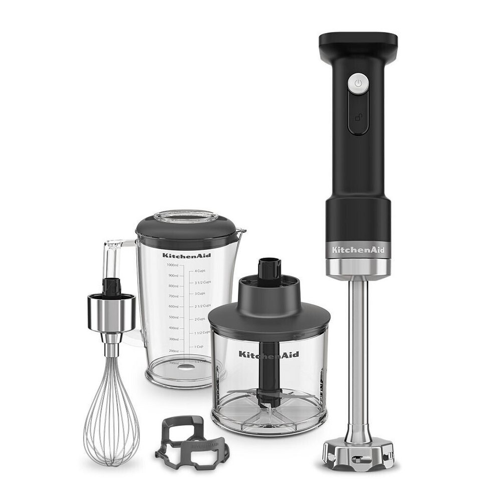 | Lieferumfang | 1 L BPA-freier Stabmixerbehälter mit Deckel, Abnehmbarer Mischarm 17,78 cm, Doppel-Messer-Klinge aus rostfreiem Stahl, Topfschutz, Zerkleinerungsaufsatz mit Messer und Schüssel, Schneebesenaufsatz, Akku und Ladekabel (nur bei 5KHBRV75) | inkl. 4-teiligem Zubehör-Set | Mix- und Messbecher 600 ml, Schneebesen Edelstahl, Zerkleinerer 350 ml | Handmixer, Stabmixer, Zerkleinerer, 700-ml-Zerkleinerungsaufsatz, Rezeptheft | Stabmixer, Pürierstab, XL Food Prozessor mit 3,2L Schüssel, Zekleinerer 0,5L, Gemüsestampfer, Mixbehälter 0,6L & Schneebesen | MultiQuick 5 Pro Stabmixer, Mini-Küchenmaschinen Aufsatz, Schneid-/Zerkleinerungsscheibe, 500 ml Zerkleinerer, Größenverstellbarer Zerkleinerer, Hackmesser/Eiscrush-Messer, Schneebesen, Messbecher | Zubehör: Multimesser, Bedienungsanleitung mit Rezepten | Messbecher 700ml, Zerkleinerer-Aufsatz, Schneebesen, Kartoffelstampfer, mit Deckel | Edelstahl-Mixfuß, Spiralkabel, Zerkleinerer, Schneebesen, Mixbecher | - | Messbecher, Schneebesen, Zerkleinerer | Multimesser, Wandhalter, Bedienungsanleitung mit Rezepten | Abnehmbarer Mixstab, Edelstahlfuß, Edelstahlmesser, Hängeschlaufe | + Messbecher | Multimesser, Schlagscheibe, Quirlscheibe, Bedienungsanleitung mit Rezepten | Inkl. Edelstahl-Schneebesen, Inkl. 0,5 Liter Mixbecher aus Kunststoff mit Messskala und Ausgießer | - | 1 x Mix-/Messbecher, 1 x Mixstab Edelstahl, 1 x Schlagbesen, 1 x Universalzerkleinerer, 1 x Kunststoff-Teigwerkzeug, 1 x Würfelschneider, 1 x Schneideinsatz dünn, 1 x Schneideinsatz dick, 1 x Raspel-Einsatz medium, 1 x Food Prozessor-Einheit, 1 x Würfeleinsatz 9mm, 1 x Gitterreiniger-Werkzeug | 1 x Stabmixer, 1 x Schneebesenaufsatz, 1 x Zerkleinerer, 1 x Mixbehälter (1L) | Multimesser, Schlagscheibe, 600 ml Mixbecher, Wandhalter, Bedienungsanleitung mit Rezepten | - |