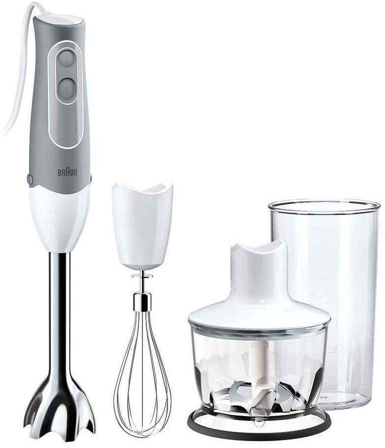 | Lieferumfang | + Zerkleinerer-Aufsatz, Mixbecher, Schneebesen | inkl. 4-teiligem Zubehör-Set | Mix- und Messbecher 600 ml, Schneebesen Edelstahl, Zerkleinerer 350 ml | Stabmixer, Pürierstab, XL Food Prozessor mit 3,2L Schüssel, Zekleinerer 0,5L, Gemüsestampfer, Mixbehälter 0,6L & Schneebesen | Zubehör: Multimesser, Bedienungsanleitung mit Rezepten | Handmixer, Stabmixer, Zerkleinerer, 700-ml-Zerkleinerungsaufsatz, Rezeptheft | MultiQuick 5 Pro Stabmixer, Mini-Küchenmaschinen Aufsatz, Schneid-/Zerkleinerungsscheibe, 500 ml Zerkleinerer, Größenverstellbarer Zerkleinerer, Hackmesser/Eiscrush-Messer, Schneebesen, Messbecher | Messbecher 700ml, Zerkleinerer-Aufsatz, Schneebesen, Kartoffelstampfer, mit Deckel | Edelstahl-Mixfuß, Spiralkabel, Zerkleinerer, Schneebesen, Mixbecher | - | Messbecher, Schneebesen, Zerkleinerer | Multimesser, Wandhalter, Bedienungsanleitung mit Rezepten | Abnehmbarer Mixstab, Edelstahlfuß, Edelstahlmesser, Hängeschlaufe | + Messbecher | - | 1 x Mix-/Messbecher, 1 x Mixstab Edelstahl, 1 x Schlagbesen, 1 x Universalzerkleinerer, 1 x Kunststoff-Teigwerkzeug, 1 x Würfelschneider, 1 x Schneideinsatz dünn, 1 x Schneideinsatz dick, 1 x Raspel-Einsatz medium, 1 x Food Prozessor-Einheit, 1 x Würfeleinsatz 9mm, 1 x Gitterreiniger-Werkzeug | Multimesser, Schlagscheibe, Quirlscheibe, Bedienungsanleitung mit Rezepten | Inkl. Edelstahl-Schneebesen, Inkl. 0,5 Liter Mixbecher aus Kunststoff mit Messskala und Ausgießer | 1 x Stabmixer, 1 x Schneebesenaufsatz, 1 x Zerkleinerer, 1 x Mixbehälter (1L) | Multimesser, Schlagscheibe, 600 ml Mixbecher, Wandhalter, Bedienungsanleitung mit Rezepten | - |
