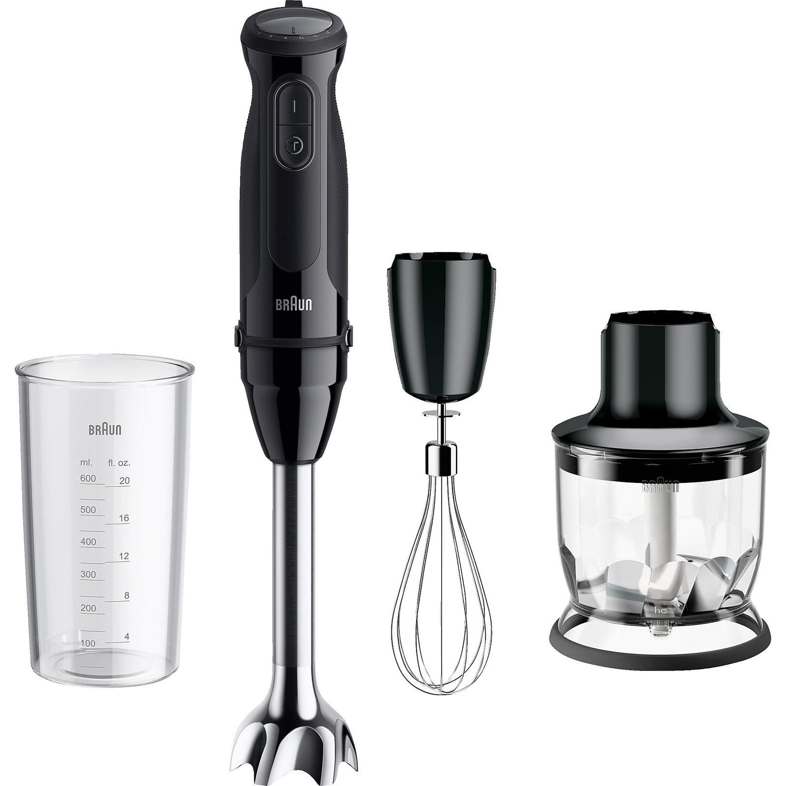 | Lieferumfang | - | inkl. 4-teiligem Zubehör-Set | Mix- und Messbecher 600 ml, Schneebesen Edelstahl, Zerkleinerer 350 ml | Handmixer, Stabmixer, Zerkleinerer, 700-ml-Zerkleinerungsaufsatz, Rezeptheft | Stabmixer, Pürierstab, XL Food Prozessor mit 3,2L Schüssel, Zekleinerer 0,5L, Gemüsestampfer, Mixbehälter 0,6L & Schneebesen | Zubehör: Multimesser, Bedienungsanleitung mit Rezepten | Messbecher, Schneebesen, Zerkleinerer | + Messbecher | Edelstahl-Mixfuß, Spiralkabel, Zerkleinerer, Schneebesen, Mixbecher | Messbecher 700ml, Zerkleinerer-Aufsatz, Schneebesen, Kartoffelstampfer, mit Deckel | 1 x Mix-/Messbecher, 1 x Mixstab Edelstahl, 1 x Schlagbesen, 1 x Universalzerkleinerer, 1 x Kunststoff-Teigwerkzeug, 1 x Würfelschneider, 1 x Schneideinsatz dünn, 1 x Schneideinsatz dick, 1 x Raspel-Einsatz medium, 1 x Food Prozessor-Einheit, 1 x Würfeleinsatz 9mm, 1 x Gitterreiniger-Werkzeug | inkl. Messbecher (0,6L), Zerkleinereraufsatz (0,5L), Stabmixeraufsatz | Multimesser, Wandhalter, Bedienungsanleitung mit Rezepten | Multimesser, Schlagscheibe, Quirlscheibe, Bedienungsanleitung mit Rezepten | Inkl. Edelstahl-Schneebesen, Inkl. 0,5 Liter Mixbecher aus Kunststoff mit Messskala und Ausgießer | - | Abnehmbarer Mixstab, Edelstahlfuß, Edelstahlmesser, Hängeschlaufe | - | 600 ml Mix- & Messbecher | Multimesser, Schlagscheibe, 600 ml Mixbecher, Wandhalter, Bedienungsanleitung mit Rezepten | - |
