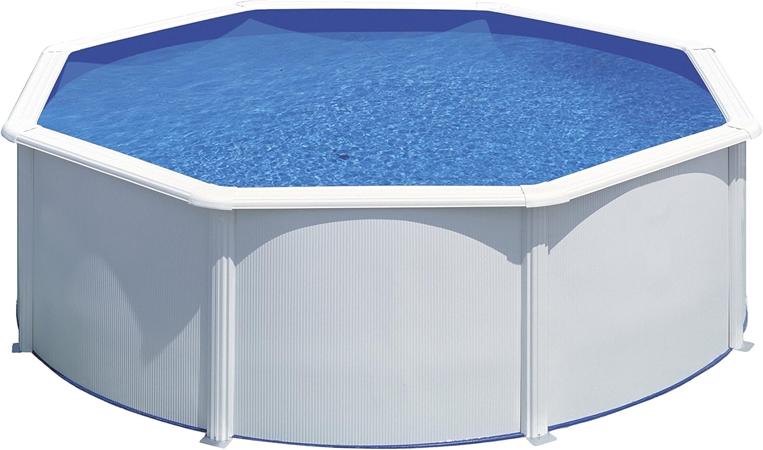 Fidji Stahlwandpool Rund Ø 350 cm Sie wünschen sich einen eleganten Pool, wollen jedoch keinen großen Montageaufwand betreiben? Dann dürfen wir Ihnen unsere brandneuen ovalen FIDJI Stahlwandpools vorstellen! Sie sind äußerst robust und witterungsbeständig und sehen durch die weiße Lackierung besonders schick aus. Je nach Größe Ihres Gartens können Sie sich zwischen 6 verschiedenen Größen entscheiden, so finden Sie auch für Ihren Garten den perfekten Pool! Neben der edlen Optik liegt der größte Vorteil in der schnellen und einfachen Montage. Sie benötigen insgesamt nur 11 Stunden mit 3 bis 4 Personen um einen stabilen, winterfesten und optisch sehr eleganten Pool aufzubauen. Ihren Pool-Traum in weniger als einem Tag erfüllen - Schneller geht es kaum. Im Lieferumfang ist ein umfangreiches Zubehörpaket bestehend aus Sandfilteranlage, Poolinnenfolie, Poolleiter sowie Skimmer enthalten. So können Sie den Pool direkt nach Anlieferung montieren und schon kann der Badespaß losgehen! Erfüllen Sie sich jetzt Ihren preiswerten Pooltraum mit unseren Fidji Stahlwandpools! Bei weiteren Fragen zu Ihrem neuen Pool kontaktieren Sie uns gerne. Wir freuen uns auf Sie!