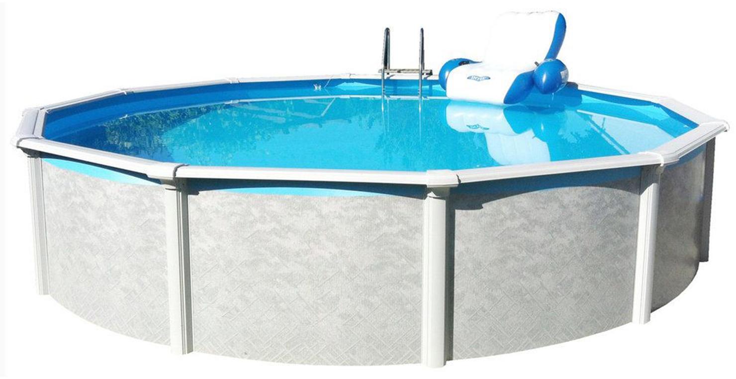 Das runde Stahlwandbecken "Grande" ist besonders stabil und kann einfach und schnell auf- und abgebaut werden. Dank der guten Verarbeitung und der stabilen Rahmenträger ist es langlebig und kann sogar über den Winter aufgebaut bleiben. Der Pool kann freistehend aufgebaut werden oder auch halb oder ganz in der Erden versenkt werden. Je nach Einbauhöhe benötigen Sie Einbausets zur Isolation, Druckschutz und Verrohrung unter der Erde. Mit diesem Pool liefern wir Ihnen ein komplettes Set mit fast allem, was sie für den Betrieb Ihres neuen Pools benötigen. Wir empfehlen für das beste Schwimmerlebnis zusätzlich die Steinbach Filteranlage Classic 400 (nicht im Lieferumfang enthalten), welche für glasklares Poolwasser sorgt. **Lieferumfang** - 15 cm breiter Metall-Handlauf - Metallsteher - Metall-Bodenschienen - winterfeste Innenfolie 0,6 mm - Skimmer und Düsenstanzung - Einbauskimmer und Einströmdüse - Anschluss-Schläuche und Schlauchklemmen - Montageanleitung