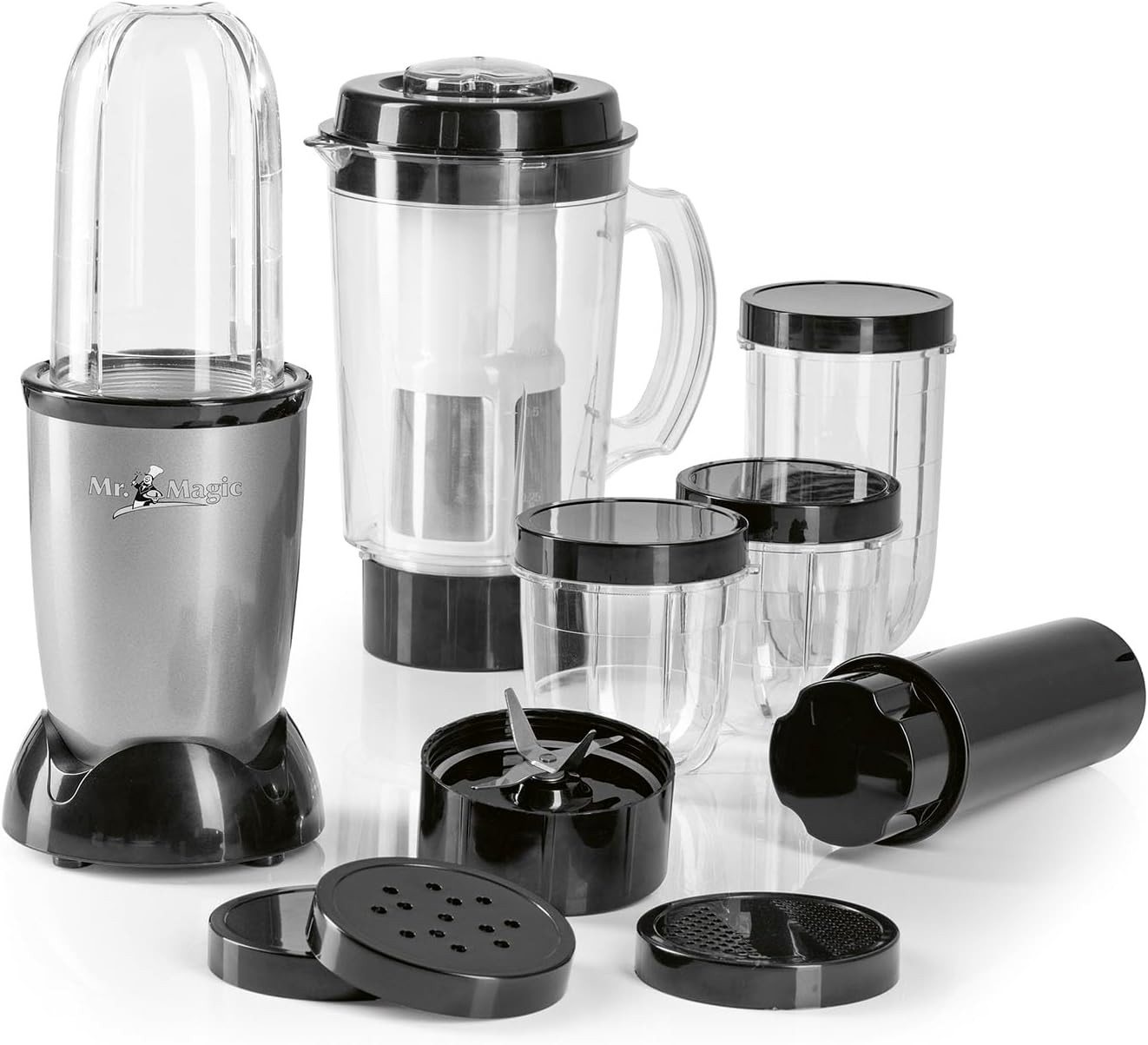 | Funktionen | Smoothie, Hacken, Rühren, Pürieren, Mahlen, Schlagen, Mixen, Turbo |