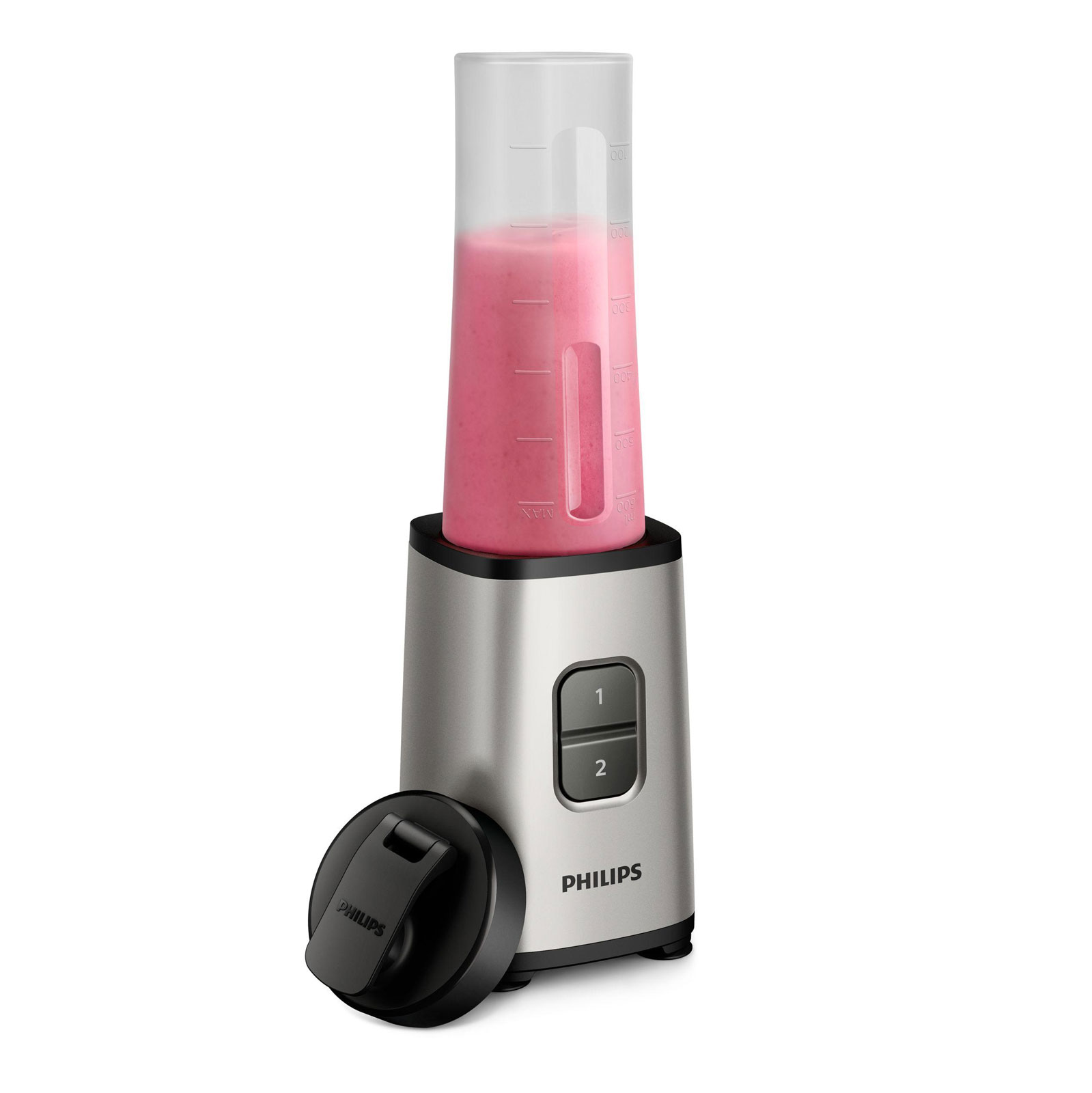 Der Philips To-Go Mini-Standmixer HR2600-80 bietet eine praktische Möglichkeit, Smoothies und Brotaufstriche schnell und einfach zuzubereiten. Sein kompaktes Design nimmt wenig Platz ein und seine einfache Bedienung macht ihn zu einem idealen Begleiter für unterwegs. Der Mixer ist auch leicht zu reinigen und hat ein gutes Preis-Leistungs-Verhältnis.