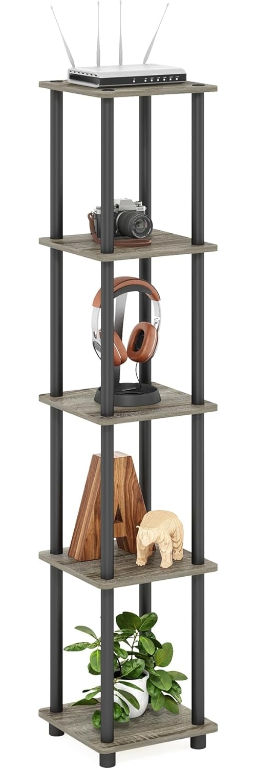 Das Furinno Turn-N-Tube 5-stufige Regal ist preiswert und einfach zusammenzubauen. Es kann auch leicht in verschiedenen Höhen aufgebaut werden. Allerdings ist das Regal nicht sehr stabil und benötigt zusätzliche Stabilisierung, um ein Umkippen zu verhindern.