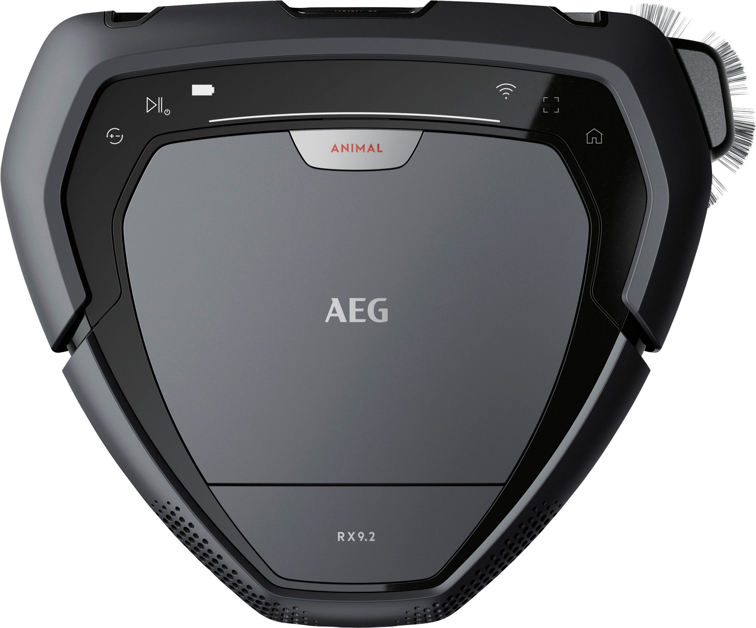 In einem schlichten grauen Design gehalten, fügt sich der AEG RX9-2-4ANM harmonisch in verschiedene Wohnumgebungen ein. Die dreieckige Bauweise ist nicht nur ästhetisch ansprechend, sondern auch funktional, da sie das Reinigen von Ecken und Kanten erleichtert. Mit einem Gewicht von 3,47 kg ist der Roboter leicht genug, um problemlos zwischen den Räumen zu navigieren, auch wenn er auf Teppichen oder Hartböden unterwegs ist.