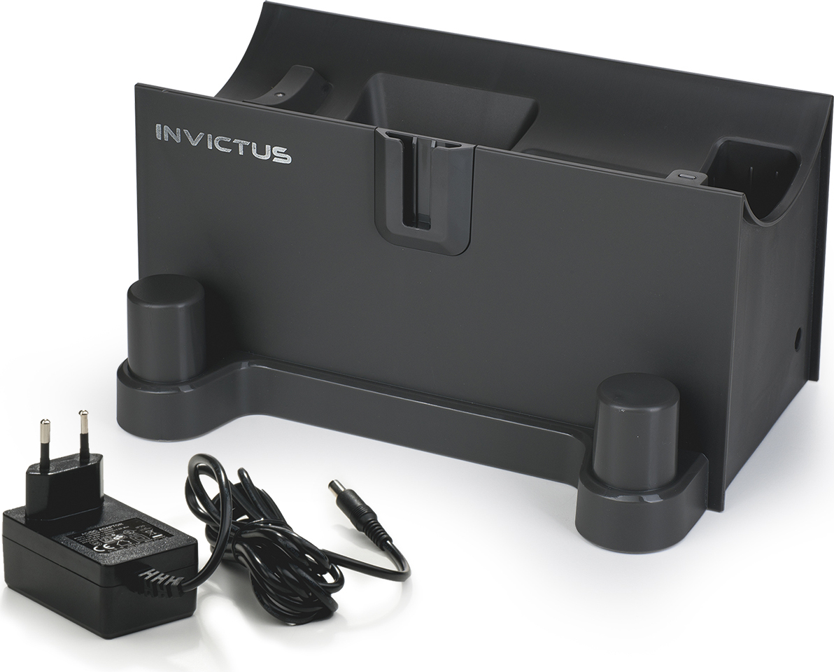 • Die INVICTUS X5 Aufbewahrungs-Station kombiniert geschickt Aufbewahrung und Aufladen in einem Gerät