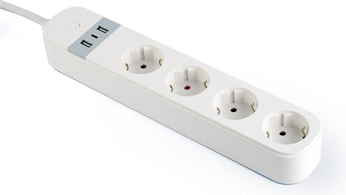 Gembird Smart Steckdosenleiste mit USB-Ladegerät4 französische Steckdosen, Weiß (4 x, 1.50 m)