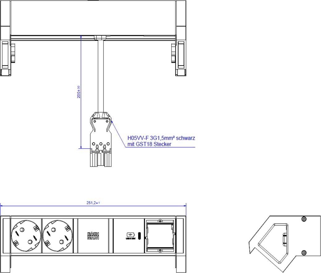 Bachmann Steckdosenleiste 902936 (4 x, CEE 7/3, 0.20 m) - Bachmann 902.936 DESK2 2xCEE7/3 1xUSB C