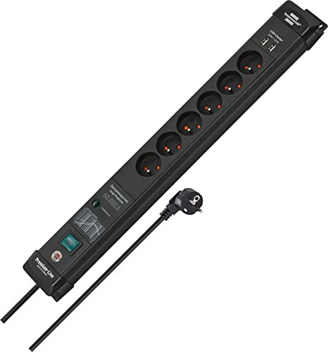 Brennenstuhl Premium-Line Stegleiste mit 4 Buchsen/Anti-Wippelleiste bis 60.00 A (Steckdosenleiste 3m mit Ausschalter, 2X USB max. 3100mA,Made in Germany) schwarz, 1951164603