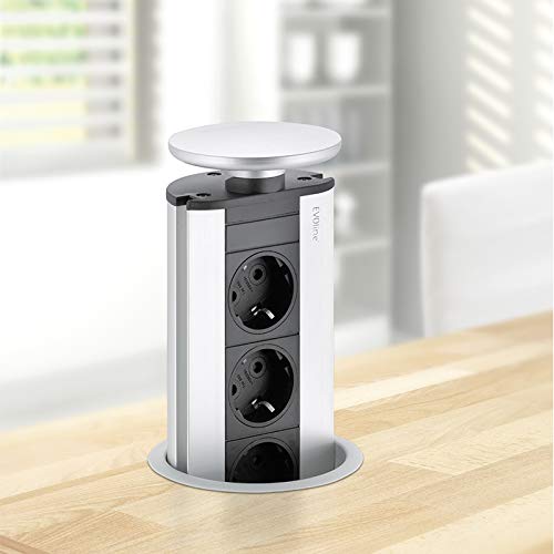 • Die Evoline Steckdose für die Arbeitsplatte ist eine praktische und elegante Lösung für den Einsatz in der Küche oder im Büro