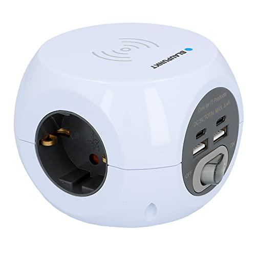 Blaupunkt SteckdosenwürfelMehrfachsteckdose, 3-fach, 2-fach USB-A + 2-fach USB-C, mit Ein-/Ausschalter, mit induktivem Laden, Weiß, 1,4 Meter