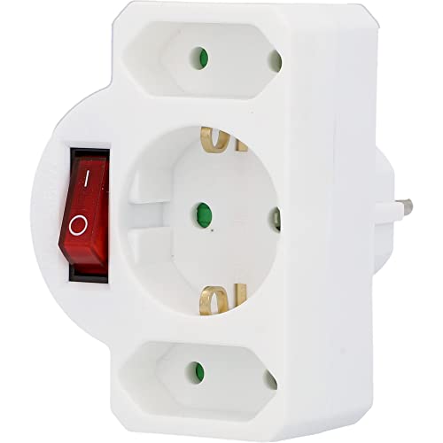 Unitec Zwischenstecker mit 1x Schuko und 2x Euro Schaltermit beleuchtetem Schalter, weiß, lose