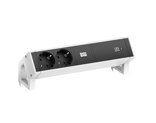 • Der BACHMANN DESK2 ist eine praktische Steckdosenleiste mit 2 Schutzkontaktsteckdosen in der Farbe Schwarz und einem USB C 60W Charger