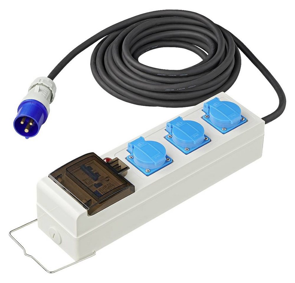 • Dieser Zelt-/Faltwagen-Steckdose bietet 3 Schuko-Steckdosen sowie MCCB und FI-Schutz mit einer maximalen Belastbarkeit von 16A