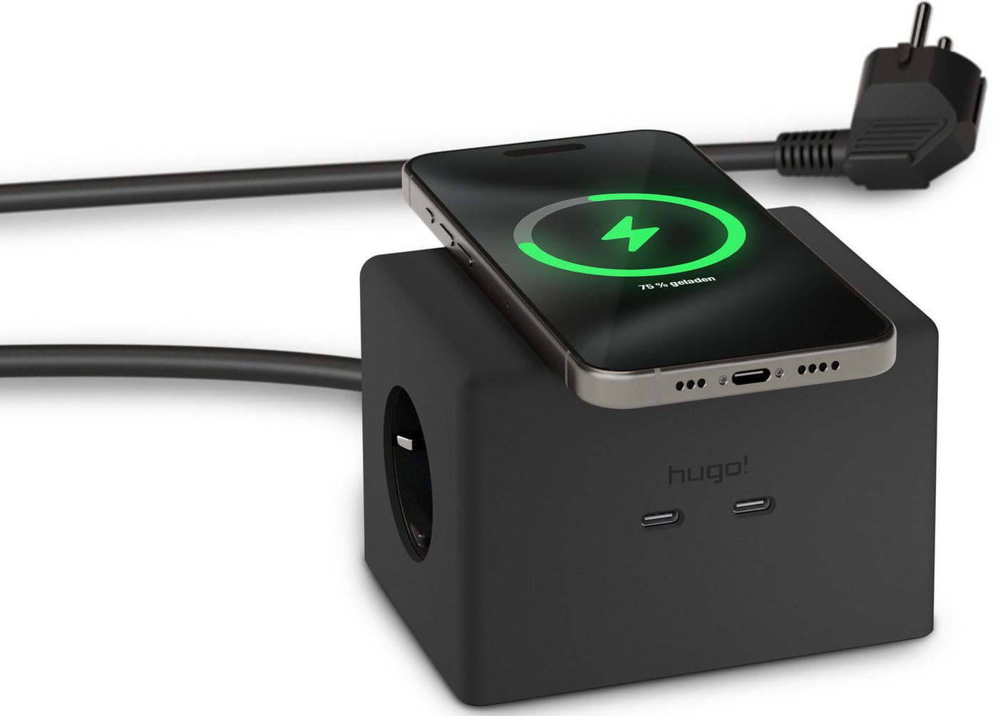 Brennenstuhl hugo! ONE Steckdosenwürfel 2 USB C 20W PDWireless Charger Mehrfachsteckdose 2-fach (Kabellänge 2 m) in matt-schwarz