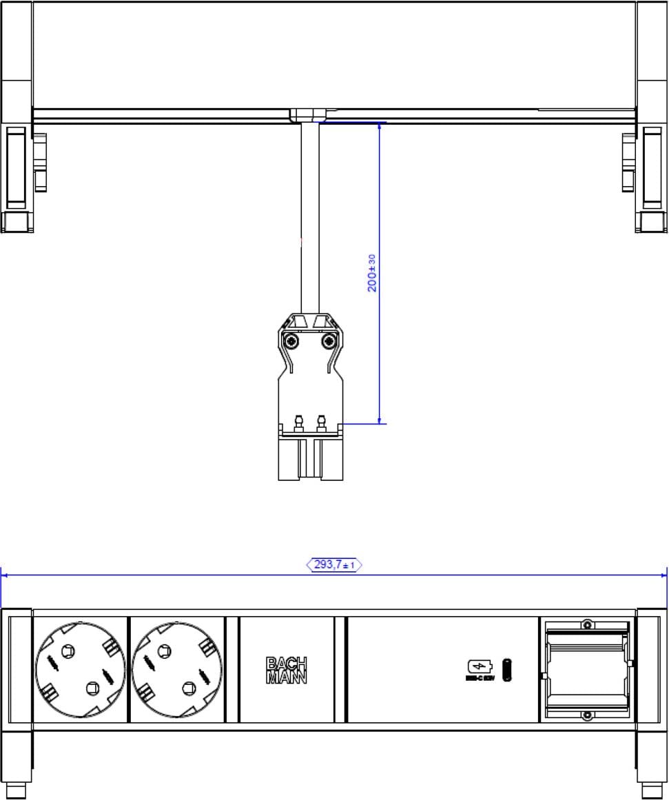 • Die Bachmann Steckdosenleiste DESK 2 bietet zwei Schutzkontaktsteckdosen, ein anpassbares Leerfeld (CM) und einen 60W USB-C Charger