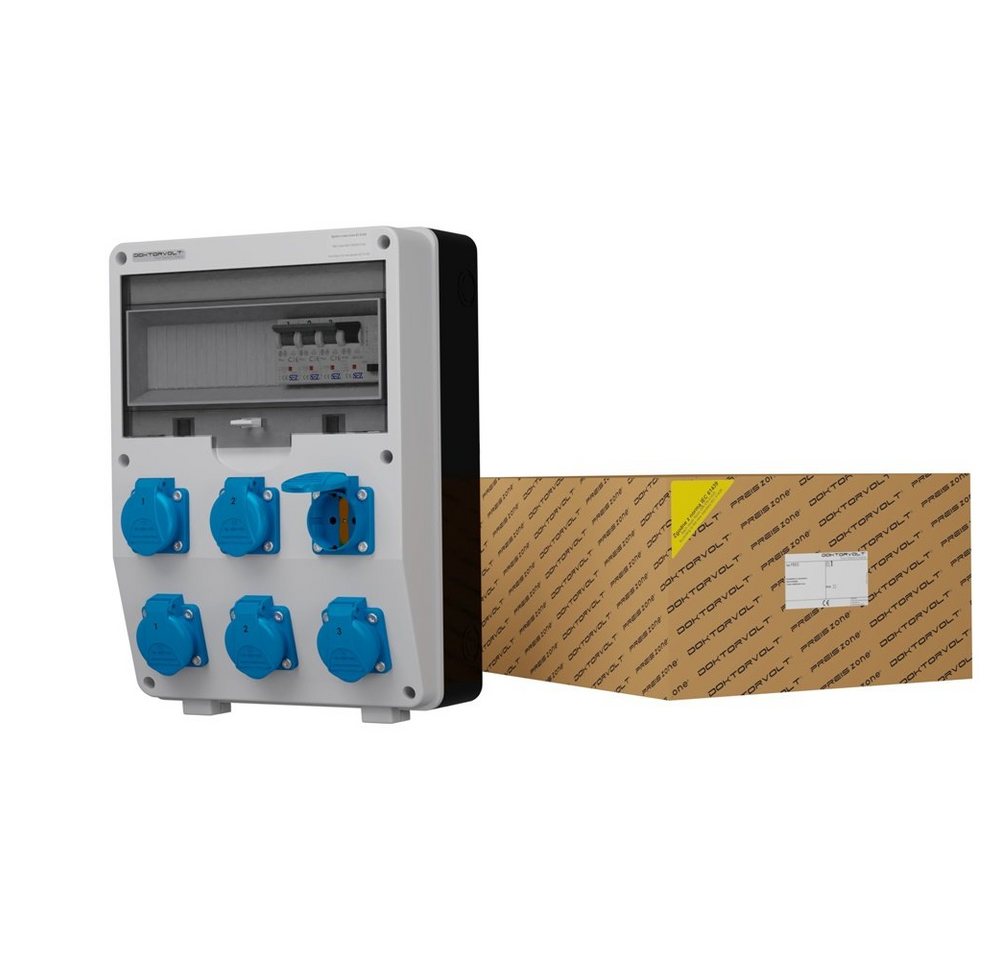 • Der Doktorvolt Stromverteiler DV-S/FI 6x230V ist ideal für den Einsatz auf Baustellen, in Industriebetrieben, Werkstätten und Garagen