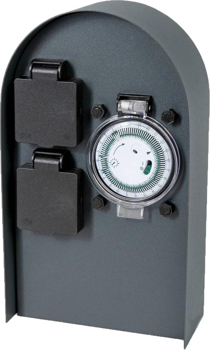 Grafner SteckdoseEdelstahl Steckdosensäule mit Timer 2 Außensteckdosen Anthrazit Gartensteckdose