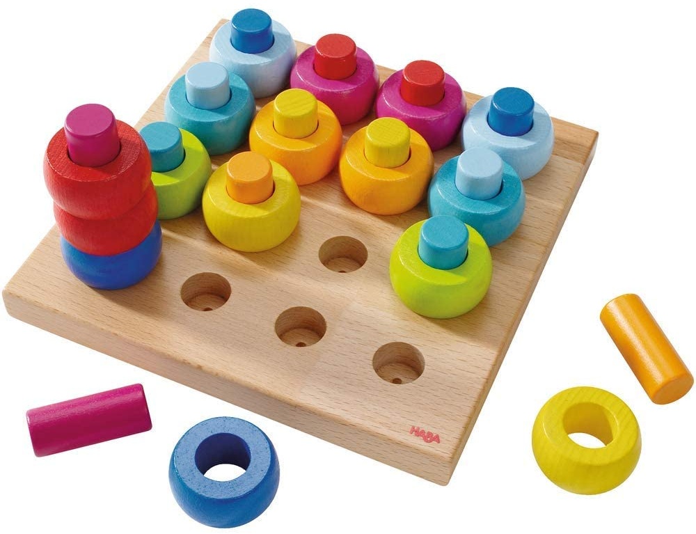 | Name | Haba 2202 - Steckspiel Farbkringel, buntes Sortier- und Motorikspielzeug aus Holz ab 2 Jahren, zum Farbenlernen |