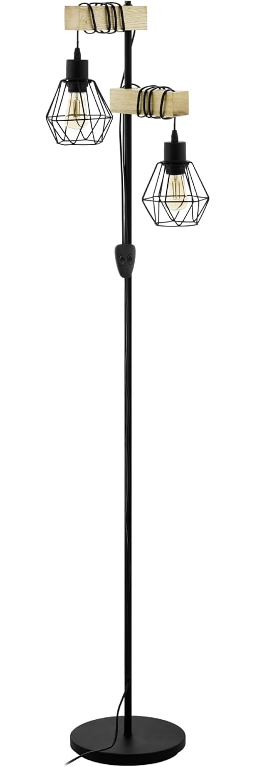 | Name | EGLO Stehlampe Townshend 5, 2 flammige Vintage Stehleuchte im Industrial Design, Retro Standleuchte aus Stahl und Holz, Farbe Schwarz, braun, Fassung E27, FSC zertifiziert, inkl. Schalter |